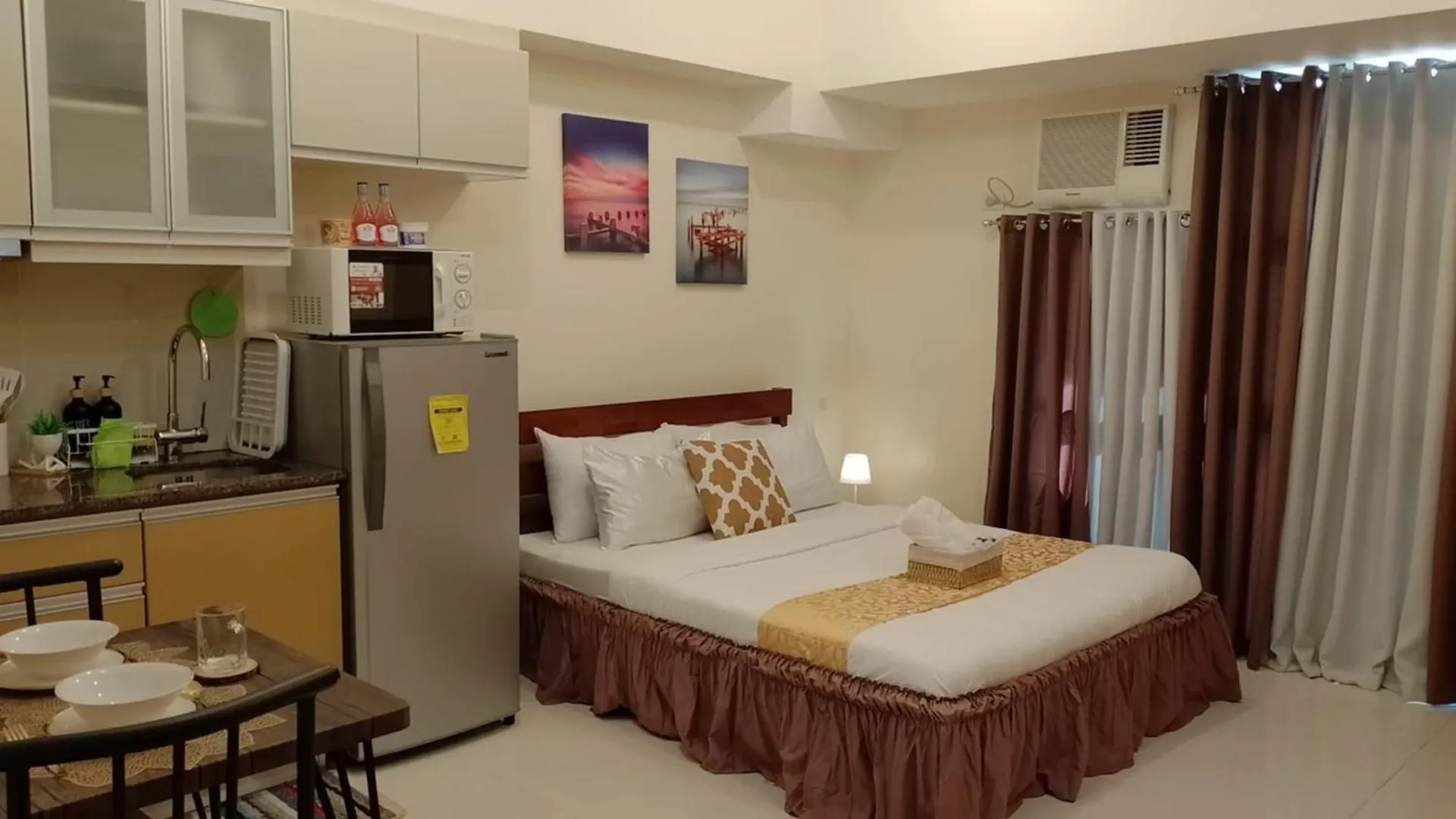 Aparthotel Mckinley Hills Taguig Haven offre des chambres avec un coin repas comprenant une climatisation, ainsi qu'une TV à écran plat avec des chaînes satellite. Les chambres sont équipées d'une bouilloire électrique, d'un réfrigérateur et de la vaisselle, d'un bidet, une toilette séparée et une douche dans les salles de bain.